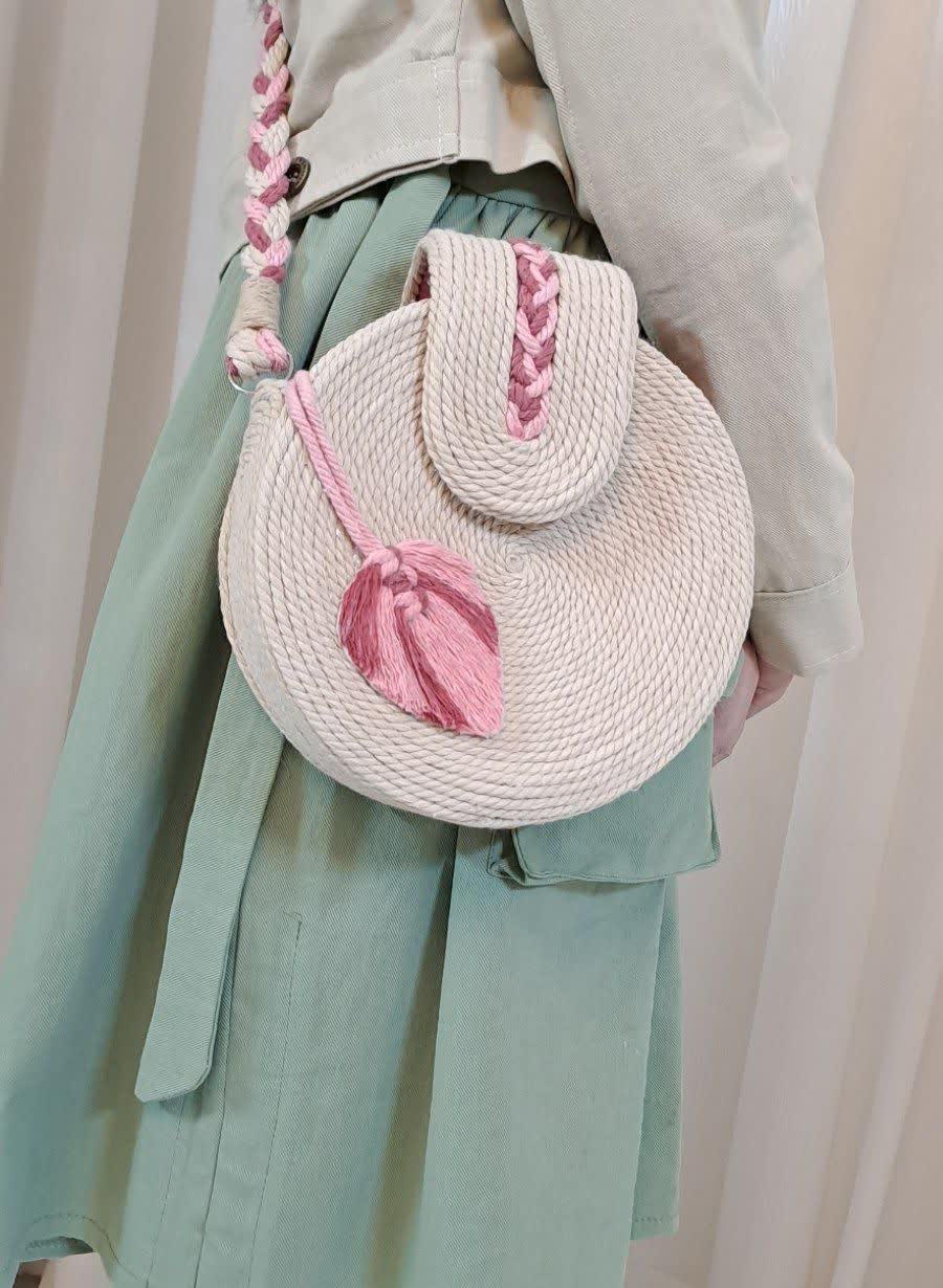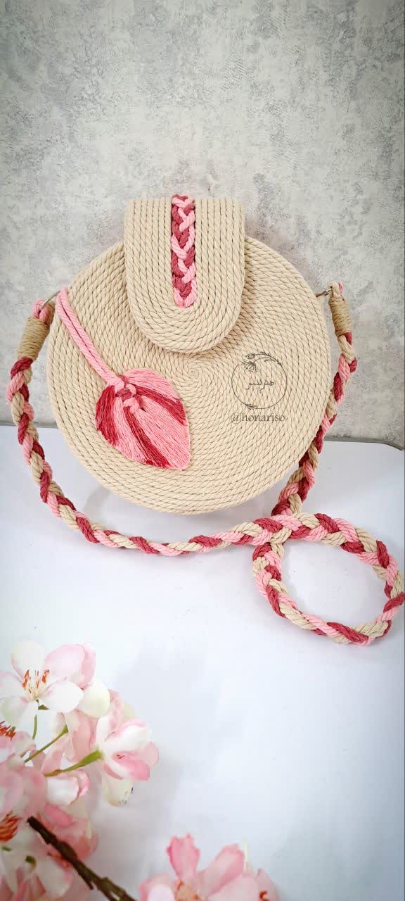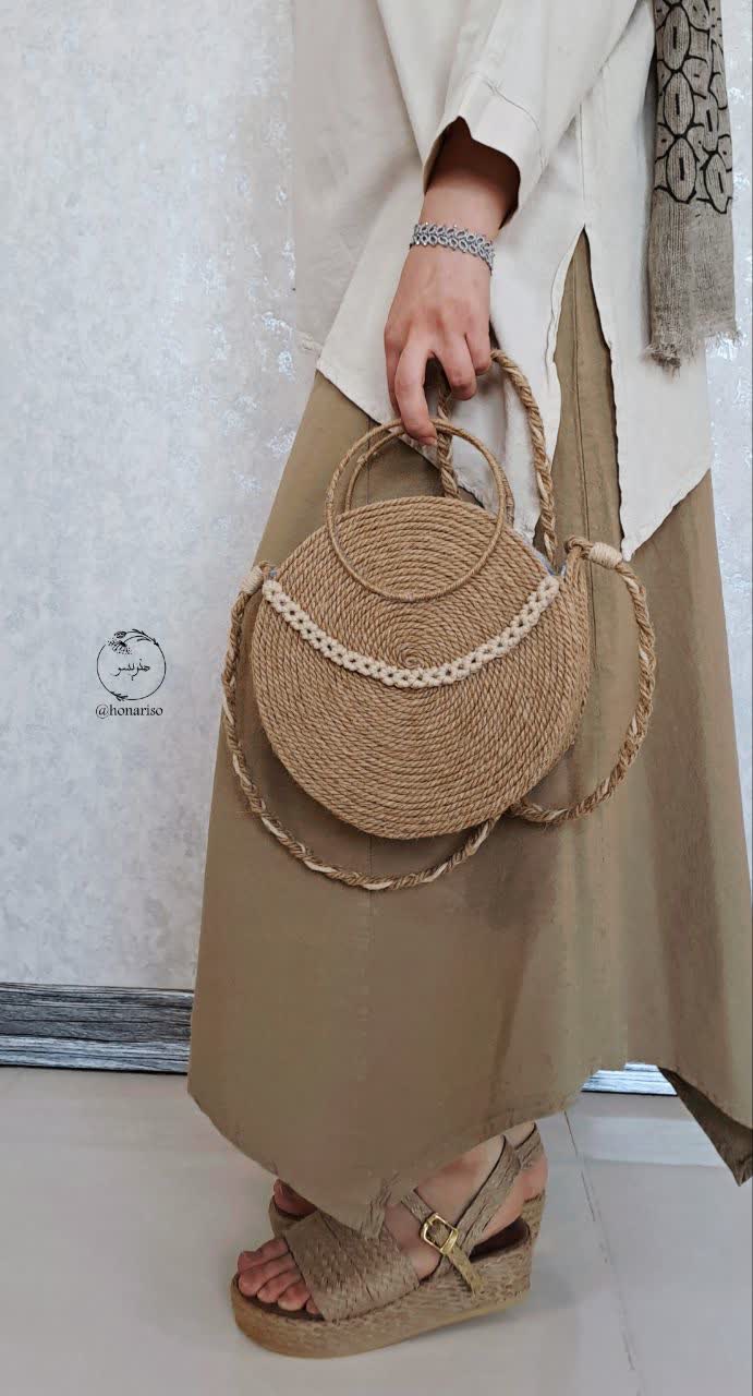 مشخصات کیف گرد کنفی: قطر ۲۲ سانت حجم ۶ سانت دارای بند بلند کار شده با نمد موکتی جهت ایستایی عالی میتونی با طرح و مدل دلخواهت سفارش بدی. جهت سفارش با طرح دلخواه : ۰۹۱۰۳۴۲۸۴۹۶