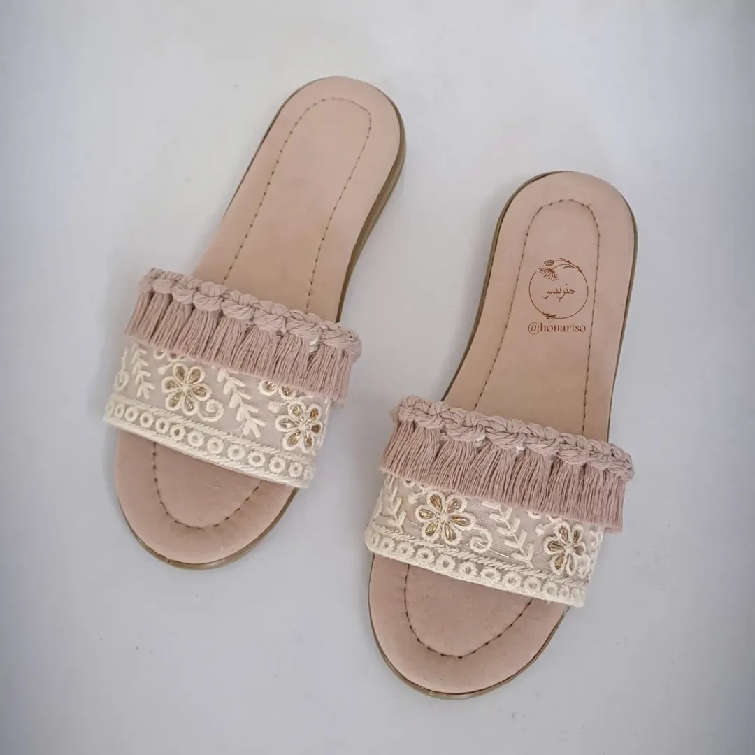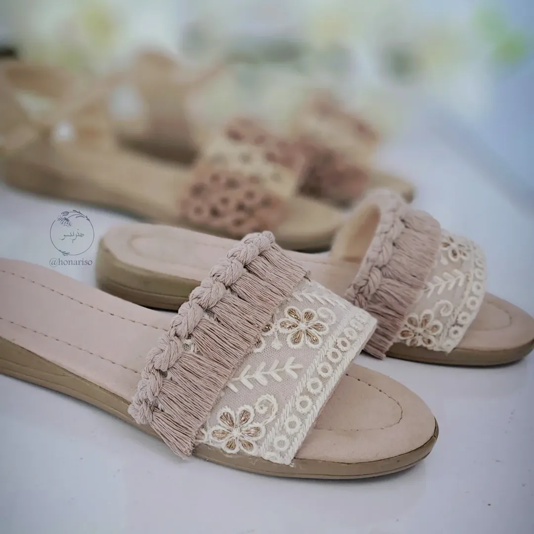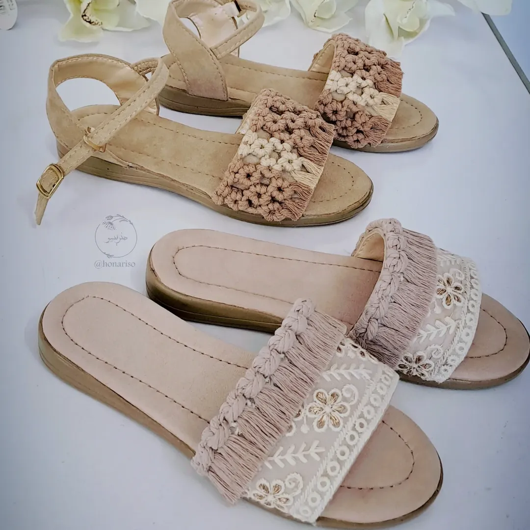صندل مکرومه دخترانه کفی تخت با دو مدل ساده و بیرونی