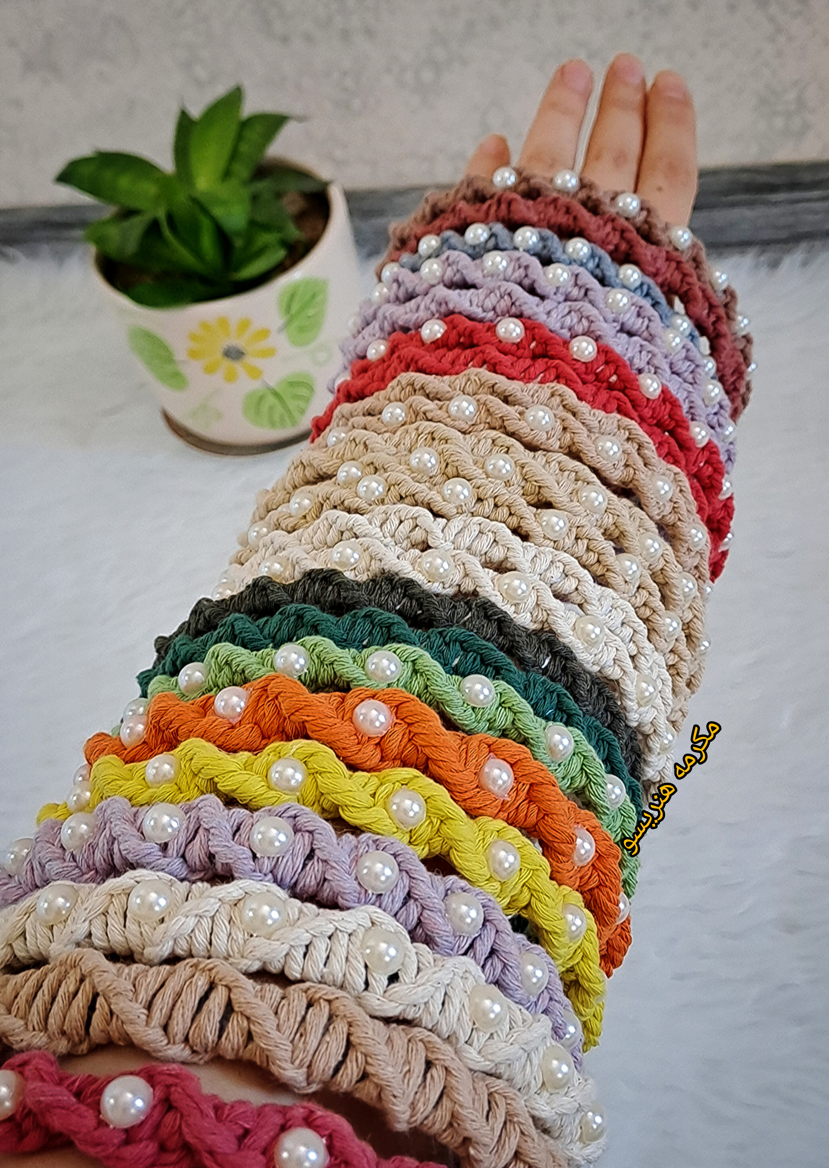 ❌️ کمتر از ۳ تا قابل سفارش نیست❌️ تل مکرومه بافی دستبافت بافته شده با نخ اعلا مکرومه، به دو صورت با مروارید و بدون مروارید در رنگ بندی مختلف با ریزترین نخ مکرومه جهت ظرافت و زیبایی کار